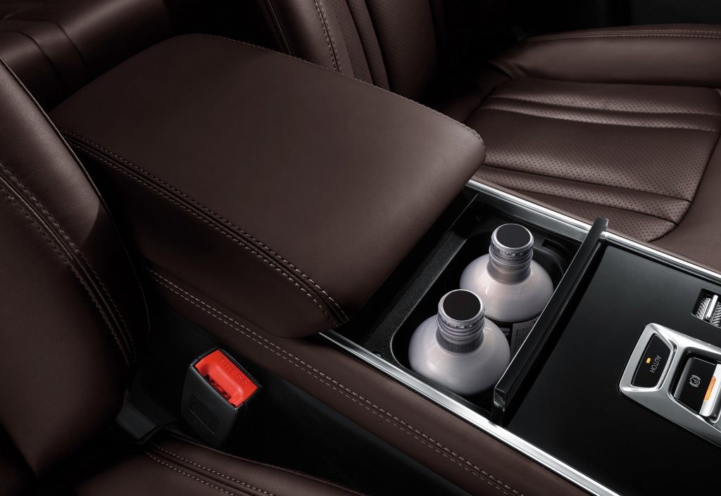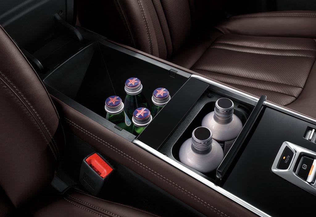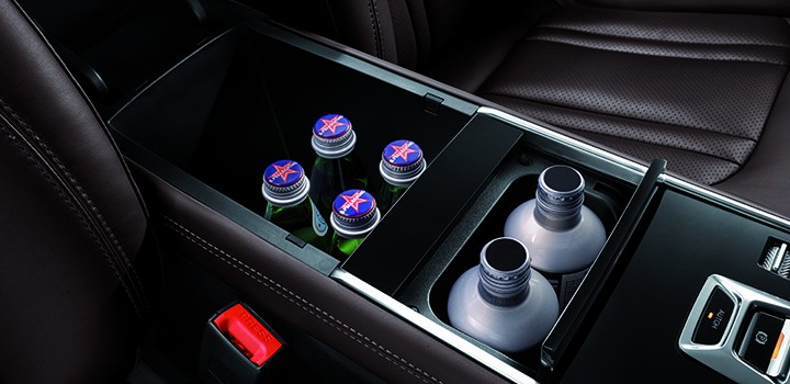 Armrest box offers cooling and warming function linked with AC.